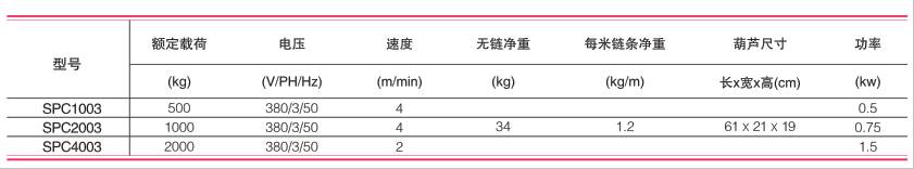美國科美ShowPro電動環鏈葫蘆技術參數: