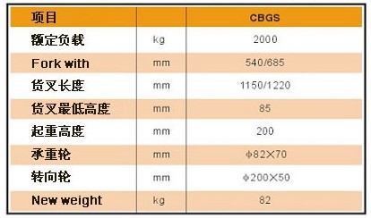 浙江諾力CBGS不銹鋼搬運車技術(shù)參數(shù):